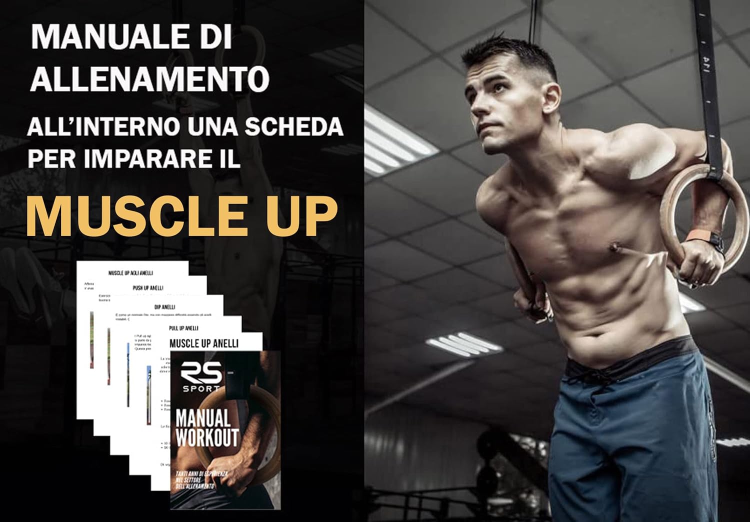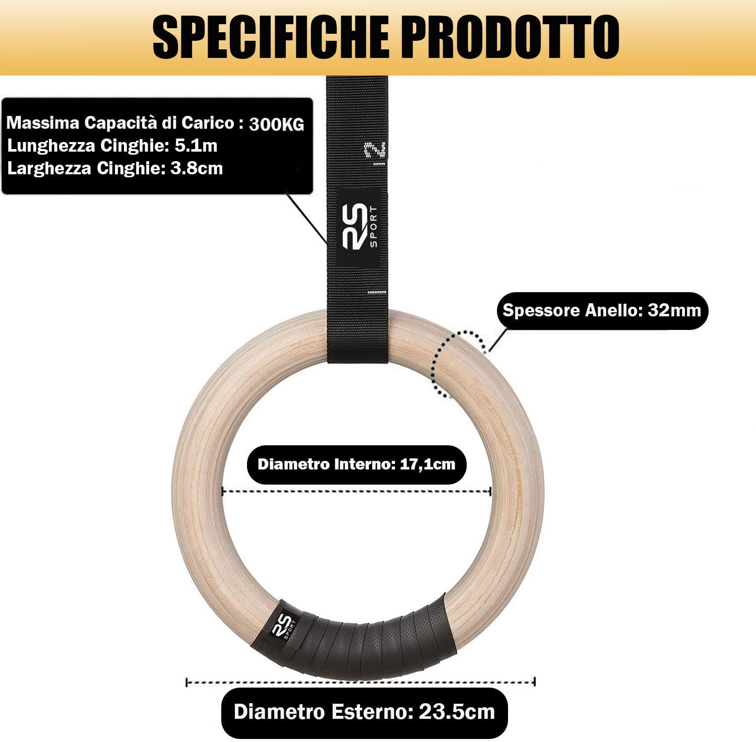 RS Sport Calisthenics Rings Wood Gymnastics Rings 32mm Professional Gym Rings for Traction Free Body Training, Gym at Home, Fitness, Crossfit and Street Workout